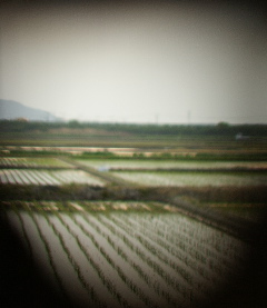 因みに写真は主人の愛機デジ一を拝借して撮った義実家のガレージの穴から覗いた田園なり。